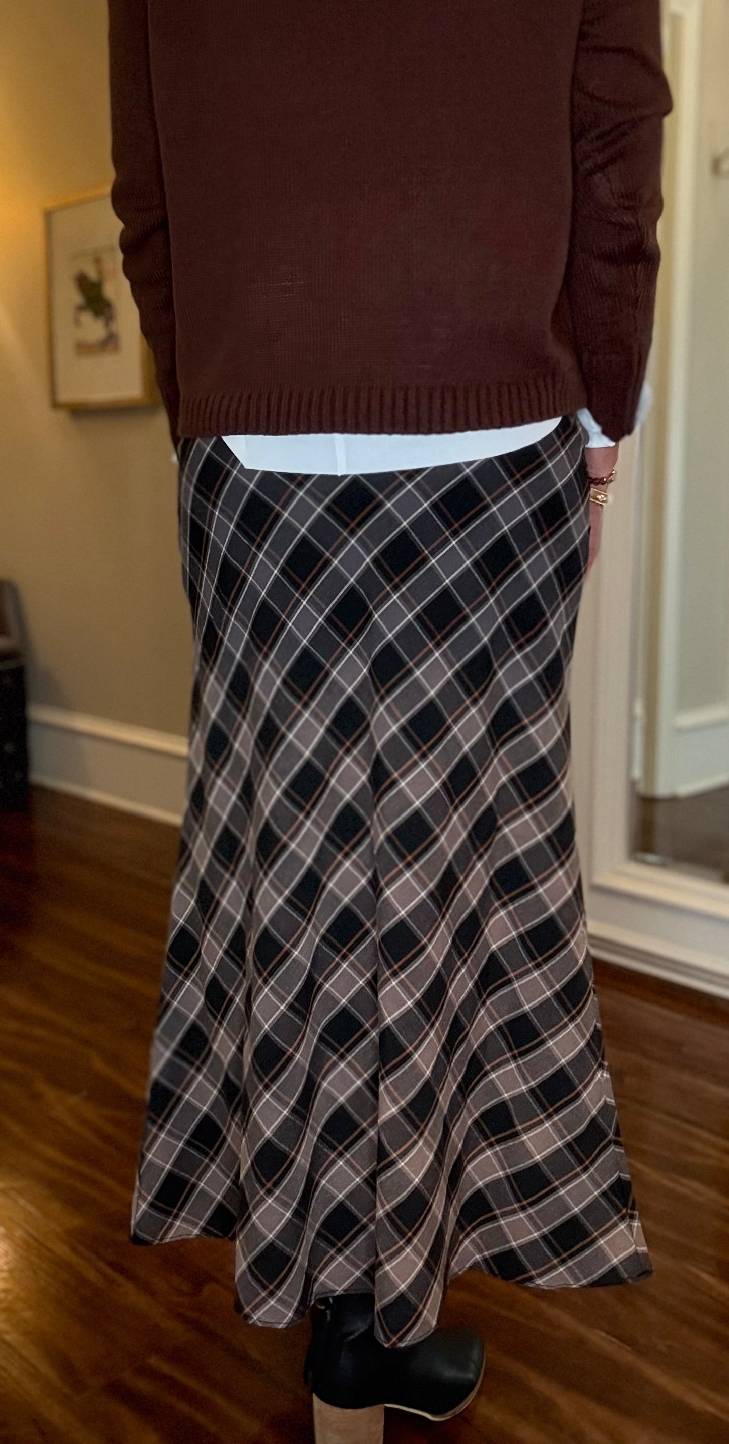 PROMESA BIAS CUT PLAID SKIRT 9.26