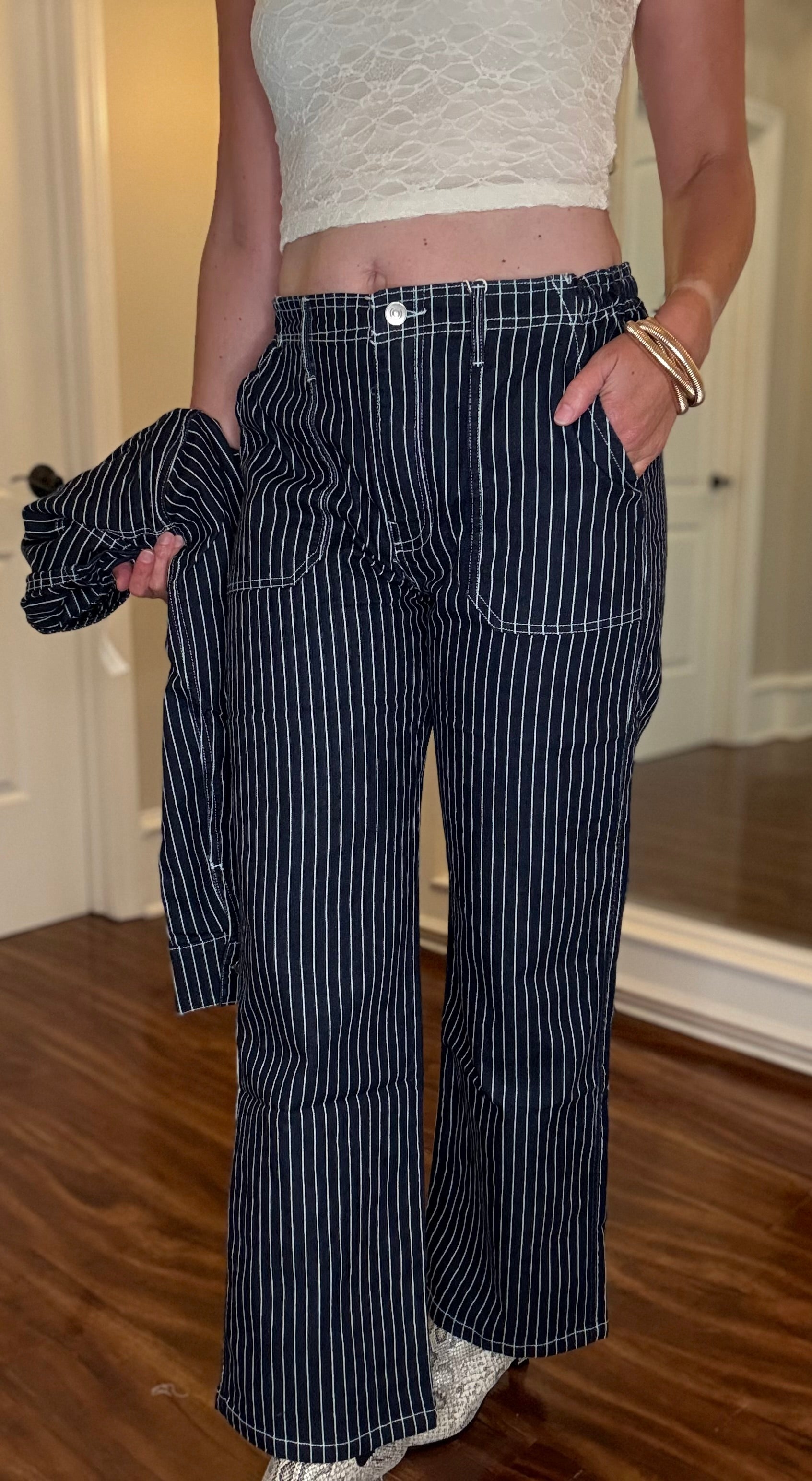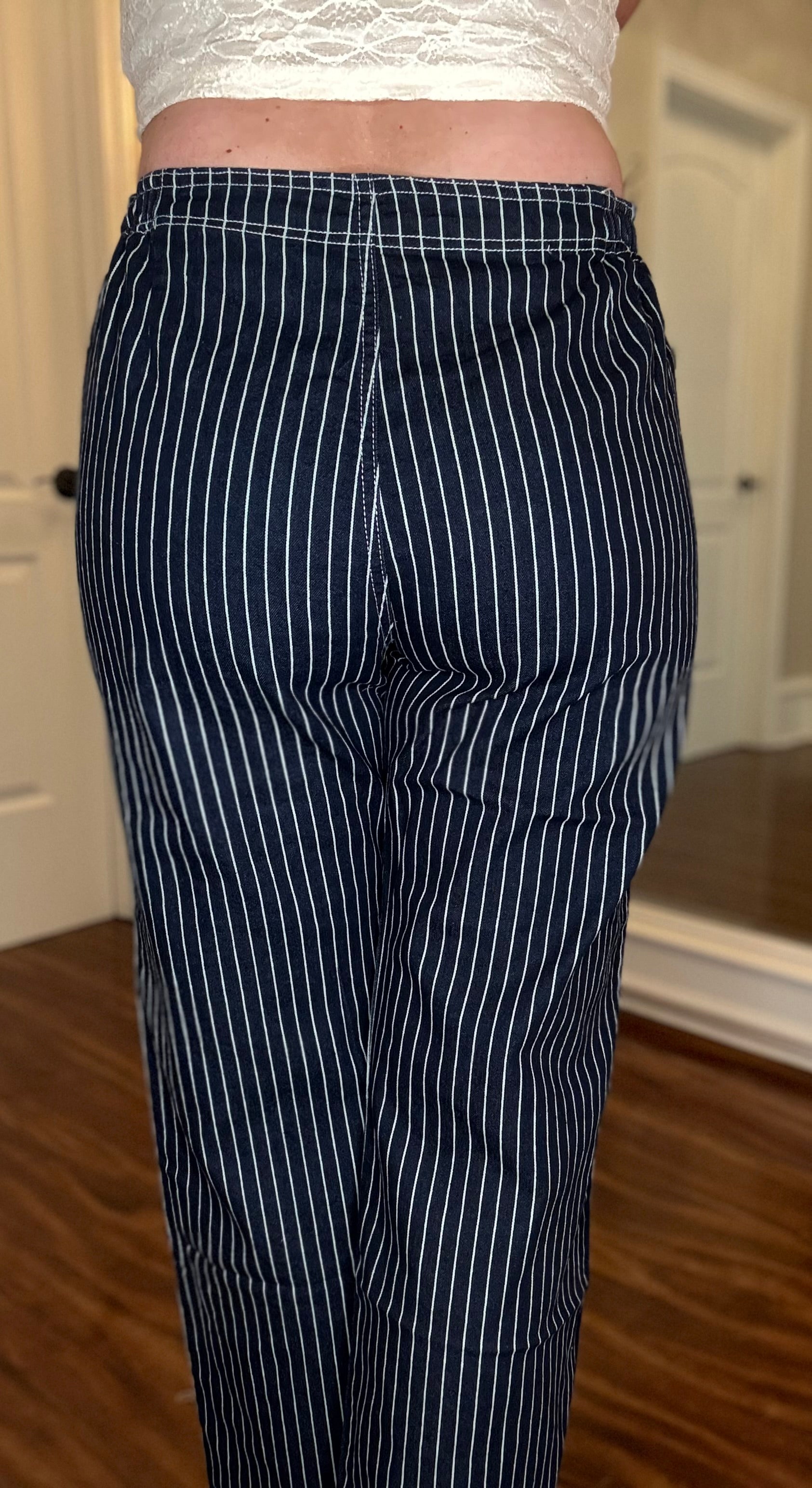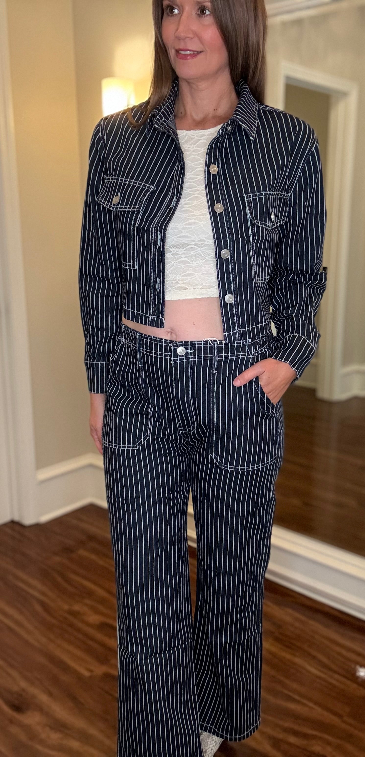 STRIPED DENIM STRAIGHT LEG JEANS 8.5